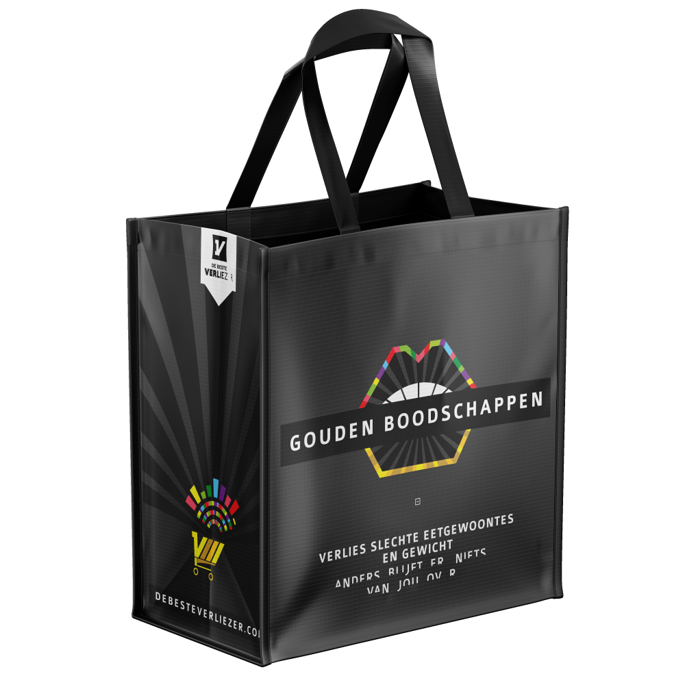 Als je écht succesvol door de supermarkt wilt gaan en naar huis wilt met een tás vol Gouden Boodschappen; doe jezelf dan een groot plezier en scoor deze gave GOUDEN BOODSCHAPPEN TAS. Deze super sterke en coole tas helpt jou om tijdens je eigen supermarkt tour bij élk schap de Gouden Boodschappen keuze te maken. In deze tas wíl je wel Gouden Boodschappen doen. Help jezelf en scoor die Gouden Boodschappen in een handomdraai. Einde verleiding!